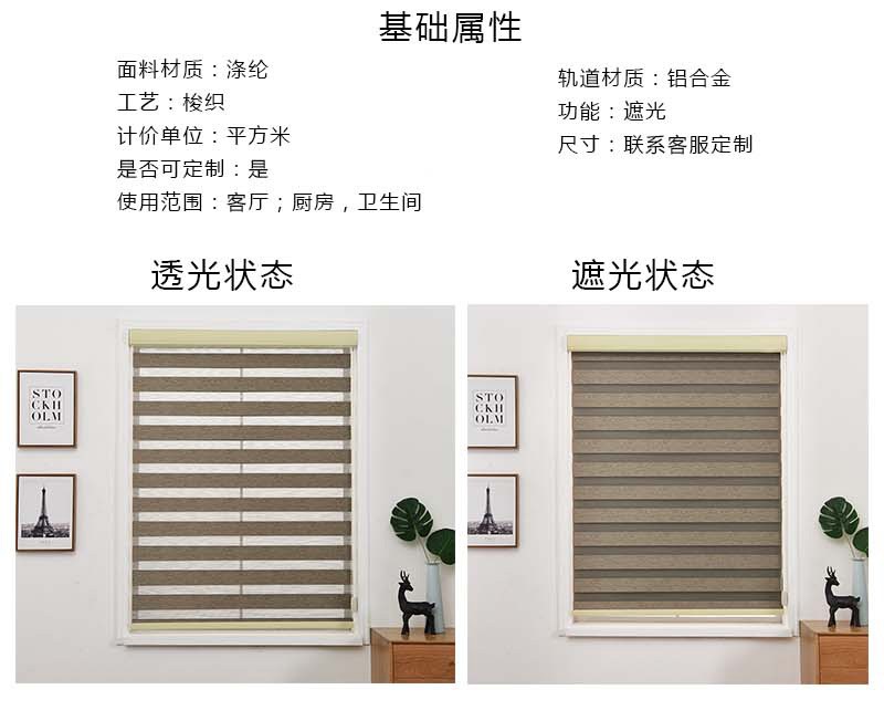 材質:滌綸 工藝:梭織 尺寸:支持定制 功能:遮光 適用范圍:客廳、廚房、衛生間