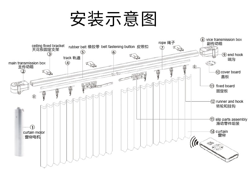 無(wú)線窗簾WIFI語(yǔ)音控制神器涂鴉智能電動(dòng)窗簾伴侶羅馬桿窗簾助力器